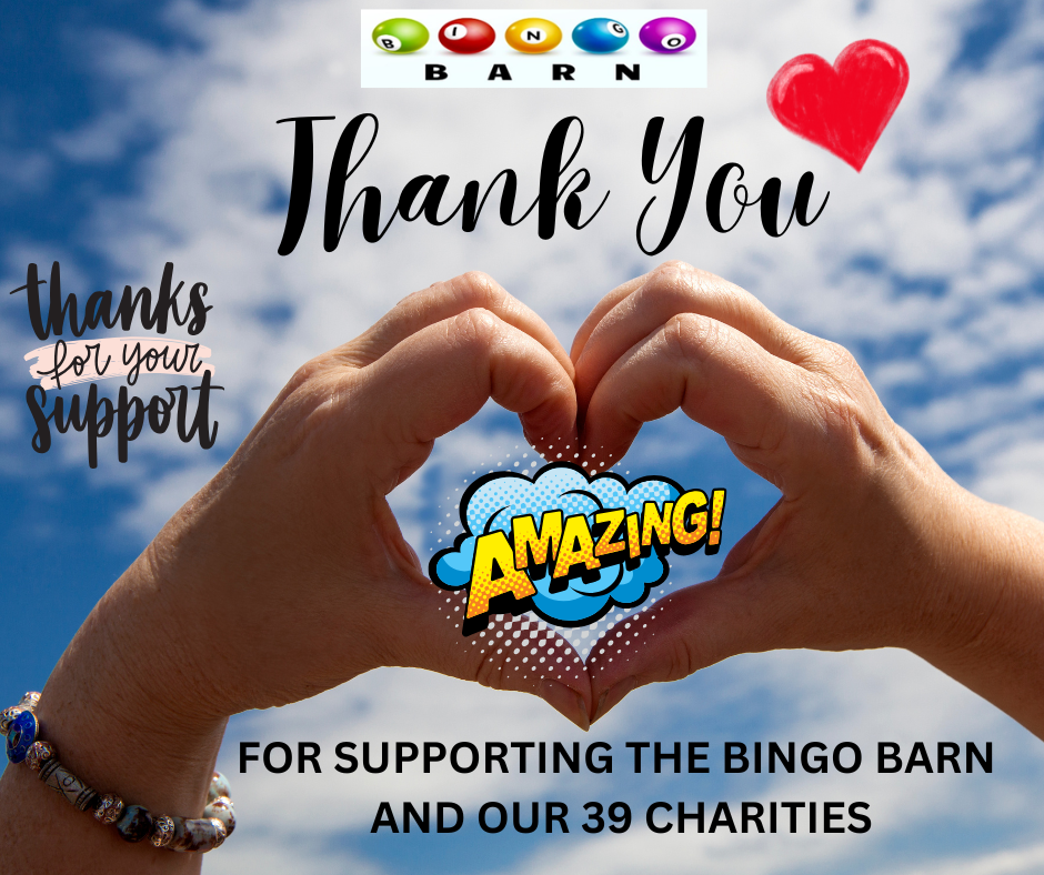 A heartfelt THANK YOU to everyone who supports the Bingo Barn and our 39 Charities.