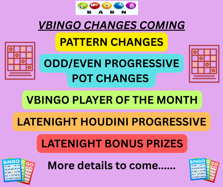 VBINGO CHANGES Mystery Dauber on March 14, 2026 VBINGO CHANGES COMING…. Category: Uncategorized Post navigation Previous: Previous post: THANK YOUNext: Next post: SUPER PLAYER OF THE WEEK