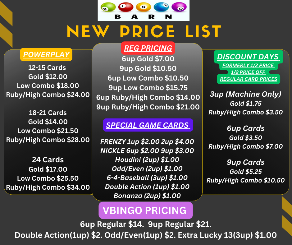 | SATURDAY EVENING* HYBRID VBINGO | 6:30PM | 9:00PM |