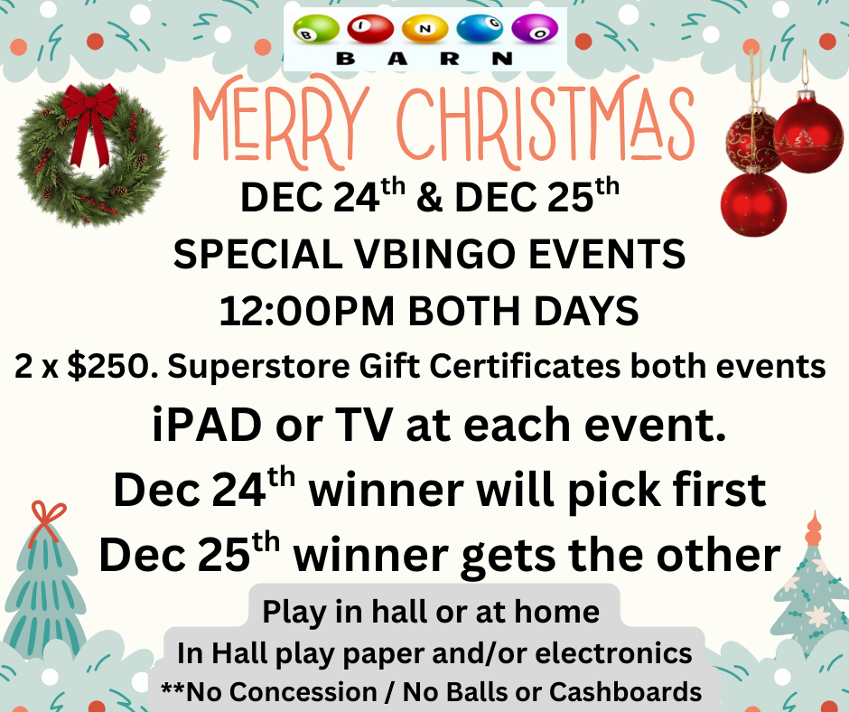 DEC 24th & DEC 25th SPECIAL VBINGO